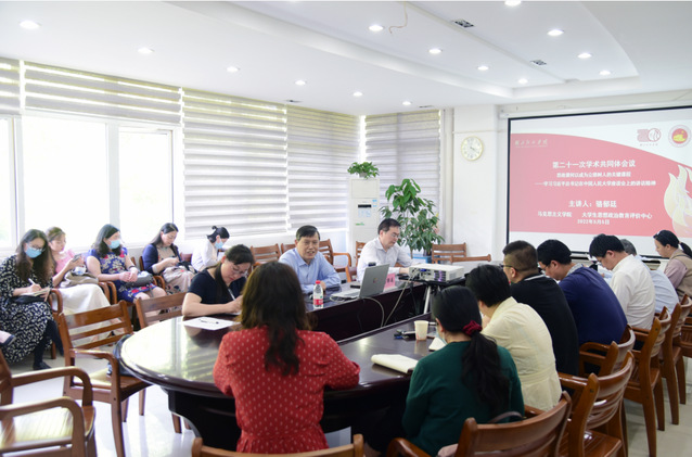 骆郁廷教授以《思政课何以成为立德树人的关键课程——学习习近平总书记在中国人民大学座谈会上的讲话精神》为题,向与会人员作专题报告。